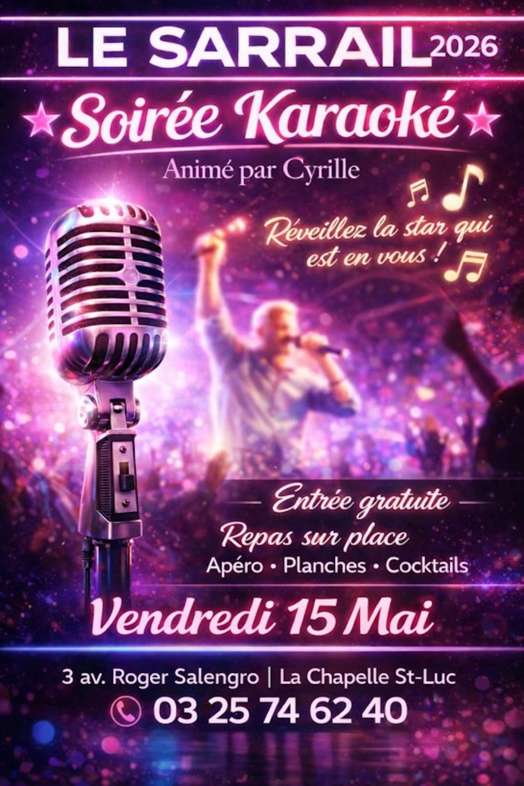 Am 15 Mai 2026 3 avenue Roger Salengro, 10600 La Chapelle-Saint-Luc Öffnungszeiten ansehen Datum Preise Dienstleistungen Lage In der Nähe Zurück zur Liste Datum Am 15 Mai 2026TageÖffnungszeitenFreitagUm 19h30 Preise Gratuit Zahlungsmittel Kreditkarte Scheck Chèque Vacances (Ferienscheck) Bar Kontaktloses Bezahlen Apple Pay Dienstleistungen Ausstattung Parkplatz Kostenlose Parkplätze Lage
